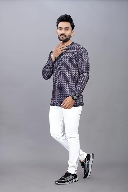 Men’s Geometric Pattern Full Sleeve T-Shirt, Navy Blue
